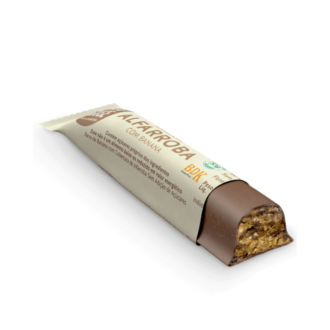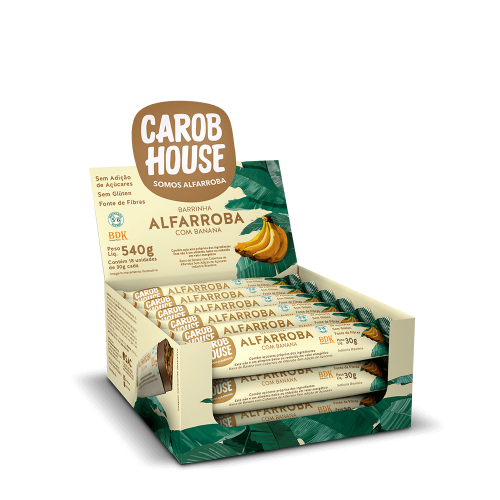 Banana-passa, Gordura Vegetal Fracionada, Equivalente à Manteiga de Cacau, Farinha de Arroz, Alfarroba em Pó, Polidextrose e Maltodextrina DE 10. Edulcorante Maltitol, Emulsificante Lecitina de Girassol e Aromatizantes.