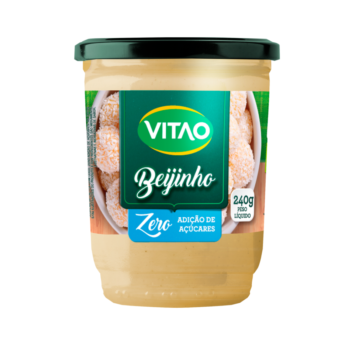 Produto lácteo (à base de leite), Zero Adição de Açúcares.O beijinho zero adição de açúcares da Vitao, foi desenvolvido especialmente para o público com dietas de restrição de açúcar e glúten e também para quem tem um estilo de vida saudável, com uma alimentação equilibrada, mas não quer abrir mão do sabor. É produzido em local exclusivo, sem risco de contaminação com glúten. Por ser um alimento que já vem pronto para o consumo, é versátil e prático, pode ser consumido puro (já vem no ponto certo para enrolar), ou até mesmo como ingrediente na cobertura e recheio de bolos, panquecas, tortas, entre outros.Apesar de serem zero adição de açúcares*, não apresenta gosto residual de adoçante, sendo muito semelhante aos tradicionais.Zero Adição De Açucares*São produtos que não tem açúcar (sacarose) adicionado, porém contém os açúcares naturalmente presentes nos ingredientes, como a Lactose (presente no leite) a Frutose (presente nas frutas) entre outros. Embora contenham os açúcares naturais da matéria prima, eles podem ser consumidos por diabéticos.