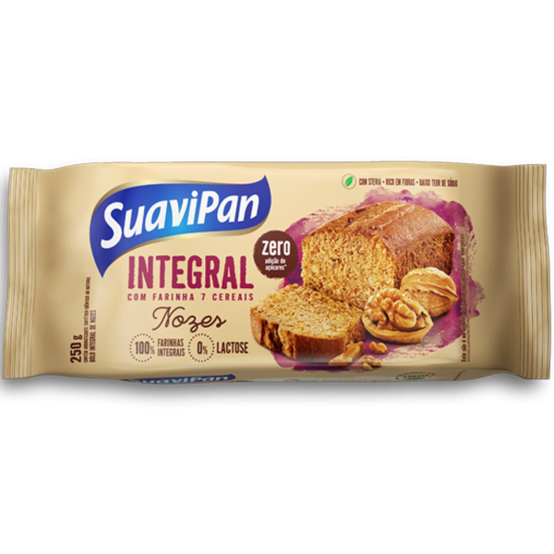 MISTURA DE FARINHAS INTEGRAIS (TRIGO, CENTEIO, AVEIA, LINHAÇA, GIRASSOL, GERGELIM E SOJA), OVO, GORDURA VEGETAL, NOZES, ÓLEO DE CANOLA, EXTRATO DE SOJA, AMIDO, ESPESSANTE: POLIDEXTROSE, UMECTANTES: SORBITOL E GLICERINA, ESTABILIZANTES: MALTITOL, GOMA GUAR E GOMA XANTANA, EMULSIFICANTES: LECITINA DE SOJA E MONO E DIGLICERÍDIOS DE ÁCIDOS GRAXOS, FERMENTOS QUÍMICOS: BICARBONATO DE SÓDIO E PIROFOSFATO ÁCIDO DE SÓDIO, AROMATIZANTE, CONSERVADORES: PROPIONATO DE SÓDIO E SORBATO DE POTÁSSIO, EDULCORANTE NATURAL: GLICOSÍDEOS DE ESTEVIOL (STEVIA).